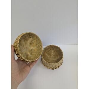 Super cute hand woven basket, pefect for trinkets or jewelry. A great natural addition to any decor style.
