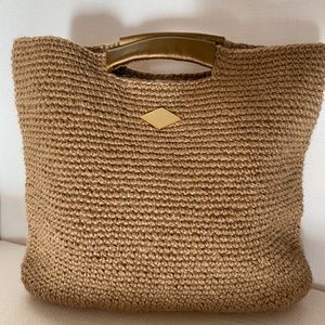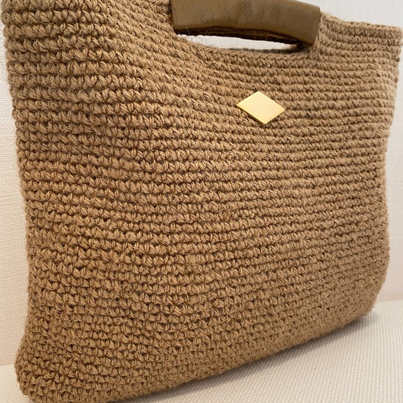 Handwoven Jute Bag with Leather Handles. This is the real jute* material, not plastic.