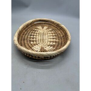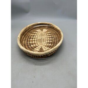 This handwoven oval basket tray showcases a beautiful geometric design, making it a versatile addition to any space. Crafted with natural materials, it serves as a functional piece for holding items or as a decorative element. The muted tones and intricate pattern add a touch of elegance to your environment.