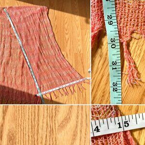 Handwoven Pink Peach Gold Open Weave Scarf With Fringe 64 in L x 15 in W