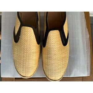 Handwoven Raffia Espadrille slip on Loafers Spanish crafts suede trim- Size 10