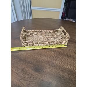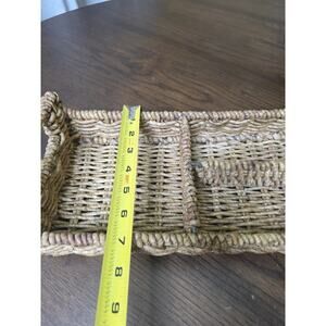 Handwoven Rectangular Wicker Basket with Handles – 14" x 8" – 3 Compartments