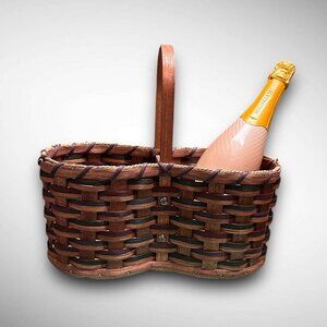 Discover the craftsmanship of Reuben E. Stutzman with this exquisite handwoven double wine carrier basket. Perfectly designed to hold and transport two bottles of wine, this basket speaks of elegance and functionality. A true piece of artistry, it promises to be a conversation starter at any gathering.