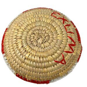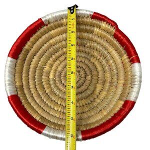 Handwoven Straw Coil Basket Bowl Red White Accents Exuma 9 Inch
