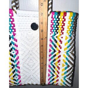 Handwoven Tote Bag With Multicolor Stripes & Button Closure