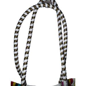 This handcrafted tote bag features vibrant multicolor stripes and a secure button closure, making it a stylish accessory for carrying essentials.