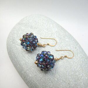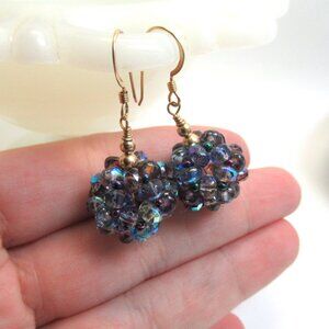 This listing is for the UG Czech glass beaded bead earrings pictured. They were made by me using 14k gold filled components and UG Czech mixed purple AB faceted beads woven into a dodecahedron. The beads in these earrings glow nicely under blacklight due to the Uranium used in making and coloring the glass. They hang from 14k gold filled earwires. These are one of a kind.