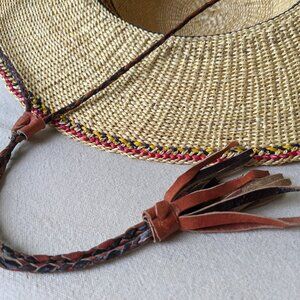 Handwoven Unisex Large Brim Straw Hat with Leather Tethers African Straw Hat