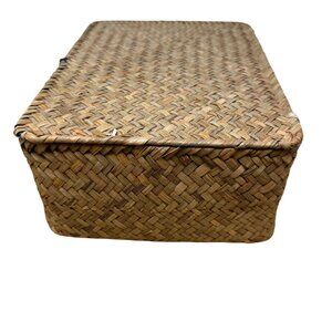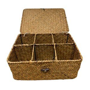Handwoven Wicker Basket Lid Compartments Entryway Organization Boho Rustic Tea