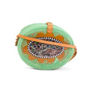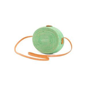 Handwoven Wicker Oval Crossbody Rattan Bag With Pa