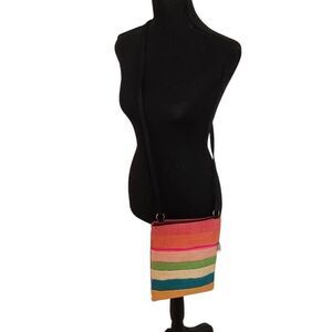 Handwoven Womens Striped Woven Top Zip Lined Sling Crossbody Bag Multicolor OS