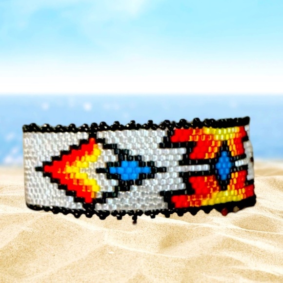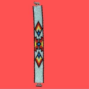 Handwoven handcrafted Native American geometric bracelet colorful Miyuki beads
