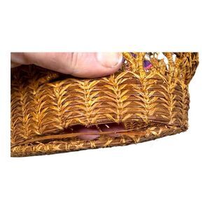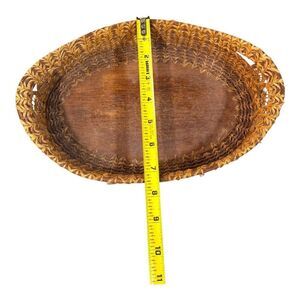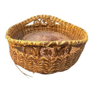 Some visible wear on one side. The is a hole at the bottom of the basket. Please see second picture. Length = 11 inches, Width = 7 inches, Height = 2 inches.