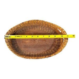Handwoven Pine Needle Straw Raffia Catch All Oval Wicker Basket Handles READ