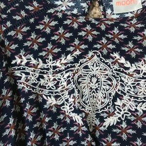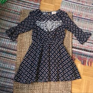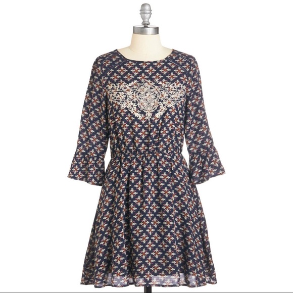 This dress was one of my ModCloth favorites, it was very lightly worn and in like new condition! This dress is fully lined, has gorgeous embroidery work on the front, an elastic waist, and cute keyhole cutout in the back. This dress was marked as a medium online when ordered but runs on the small side