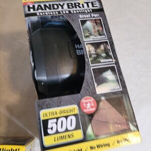 The Handy Brite Cordless LED Spotlights are a convenient and versatile lighting solution for any home or workshop. These battery-powered spotlights provide 500 ultra-bright lumens of light, making them perfect for illuminating dark areas while working on tasks. With their cordless design and LED lighting technology, these spotlights offer portability and energy efficiency. The two-pack ensures that you always have a spotlight on hand for any project or emergency situation.