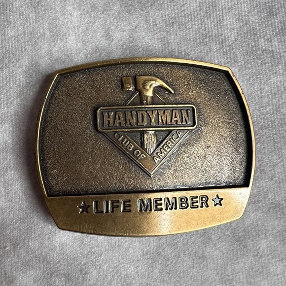 Handyman Club Of America Life Member Belt Buckle 1996 VTG Brass Hammer Logo Gift