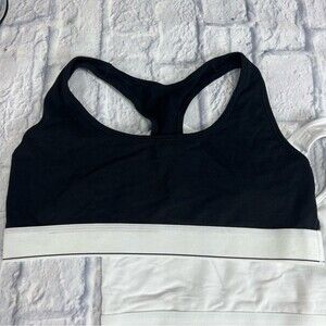 Hanes four pack black and white medium support bralettes. These are in excellent condition, worn only once or twice with tags removed (see photos for measurements). these are super stretchy. The fabric is super soft. This comes from a smoke free home and will be mailed same business day.