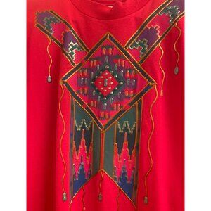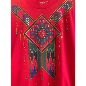 Hanes 50/50 Pink Raspberry Aztec Puffy Paint T-Shirt Large Womens Art to Wear