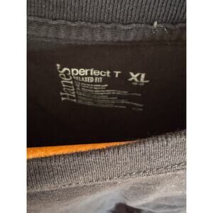 The Hanes Adult Perfect-T Long-Sleeve T-Shirt in size XL is a classic and comfortable black t-shirt for men. Made of cotton, it features a regular fit with a crew neckline and long sleeves. This versatile solid patterned shirt is perfect for everyday wear and can be easily paired with different outfits for a casual look.