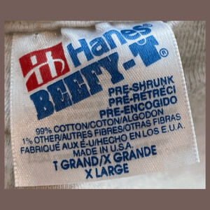 A true 90s gem—this vintage Hanes Beefy-Tee features a bold embroidered "ARIZONA" graphic with classic Southwestern geometric motifs. Made in the USA from a soft, durable cotton blend, it’s cut from single stitch construction, signaling true vintage craftsmanship. Light gray base, relaxed fit, and iconic 90s souvenir tee energy.