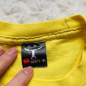 Hanes Beefy Batman Why So Serious Yellow Cotton Tee Shirt Size Large