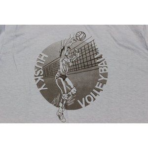 Way cool vintage Husky Volleyball print athletic / sport t-shirt from Hanes, made in USA.
