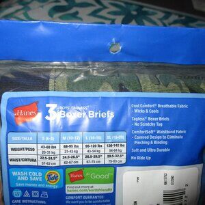 Upgrade your boy's underwear collection with this 3 pack set of Hanes boxer briefs. Made from a comfortable blend of polyester and cotton, these briefs feature tagless design and moisture-wicking technology for added comfort and convenience. The solid multicolor pattern and XL size make them perfect for boys of all ages.
