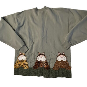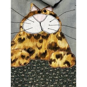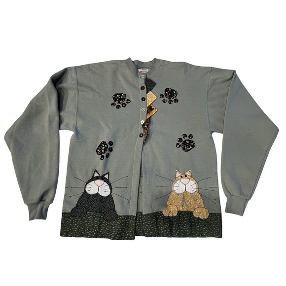 Hanes Cardigan Sweater Womens Medium Gray Cat Applique Button Front Animal Novelty Grandma Core Cat Core