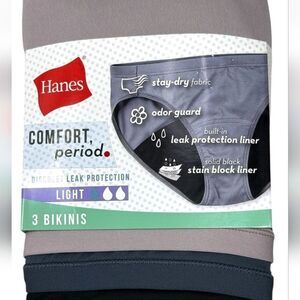 Hanes Comfort Period. Discreet Leak Protection Light 3-PK Bikinis