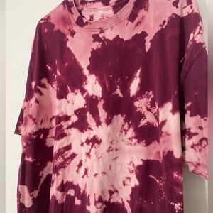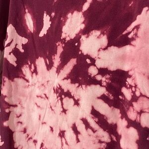 Hanes brand, hand bleach dyed, burgundy and pink color tshirt. 100% preshrunk cotton. Super cute design great for everyday wear. Good condition, no noticeable flaws. Super comfy and cute on, size 2XL.