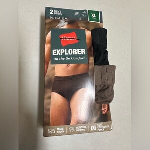 Hanes Explorer briefs offer on-the-go comfort. Moisture-wicking fabric. Soft contoured pouch. Available in black and tan.