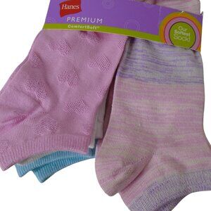 Hanes Girls No Show Premium Comfort 6 Pairs Large Socks Shoe Size 4-10