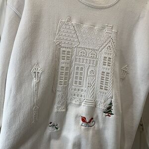 Hanes Her Way Vintage Christmas Village Crochet Cut Out White Sweatshirt Women L