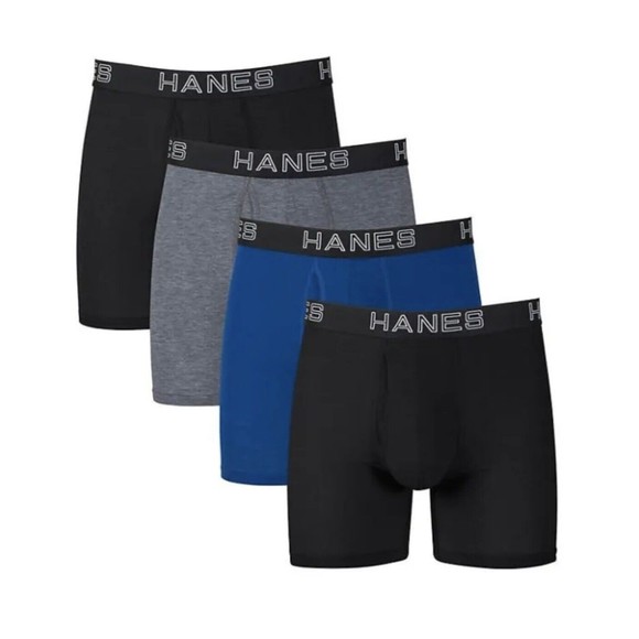 Hanes Men's 4 Pack Total Support Pouch Boxer Brief Size XL Blue Grey Black