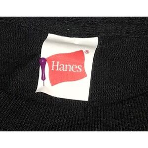 Hanes Mens Size L Black Burn Rubber Logo Short Sleeve Measurements Pictured
