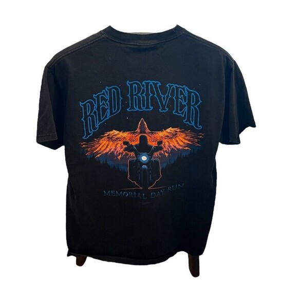 Hanes Men's T-Shirt Red River Rally Motorcycle Double Sided Size Medium