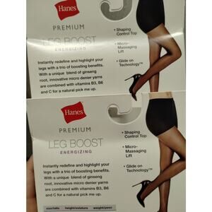 Hanes NEW Set of 2 Size Small Jet Black Leg Boost Control Top Support Pantyhose