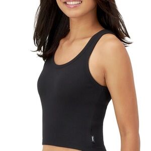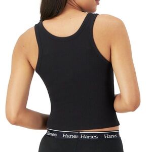 Hanes Originals Black Scoop Neck Fitted Cropped Ribbed Tank Top Stretch Cotton