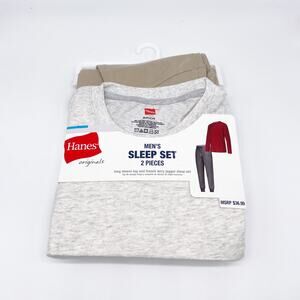 Hanes Originals Men's 2pc Soft French Terry Joggers Pajama Set Gray Brown Small