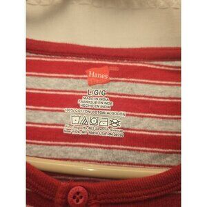 Hanes Pajamas Womens Size Large Striped Red Gray Long Sleeve