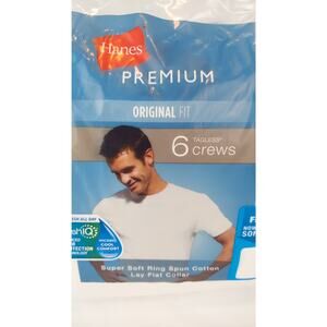 Hanes Premium Shirt Mens Medium Crew Neck Tagless Original Fit 6 Pack Undershirt