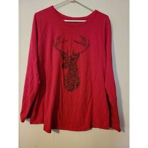 Hanes Shirt Women's Size 2XL Long Sleeve Round Neck Deer Design Tee (AG)