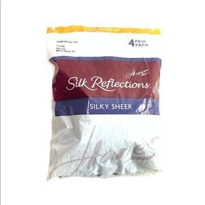 Hanes Silk Reflections Black 4 Pair Silky Sheer Reinforced Toe Stockings