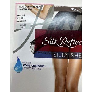 Hanes Silk Reflections Silky Sheer Pantyhose Size CD Town Taupe Non-Control Top Sheer Toe Lot