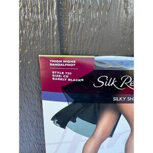 Hanes Silk Reflections Silky Sheer Thigh Highs 720 CD Barely Black Sandalfoot