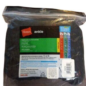Hanes Size S 4.5-8.5 Ankle Socks Boys 10 Pair Black Comfort Toe Seam NEW