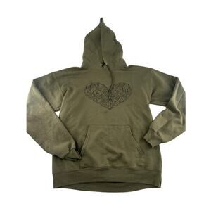Hanes Sweatshirt Womens Medium Forest Green Dog Lover Heart Hoodie Pockets