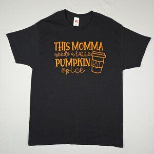 Hanes This Momma Needs a Latte Pumpkin Spice PSL Graphic T-Shirt Black L Fall