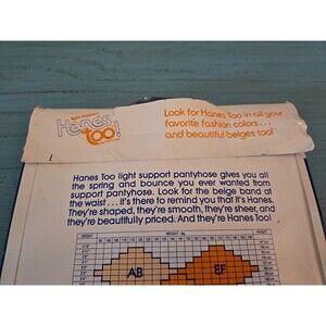 The product is a vintage pair of Hanes Too Light Support Pantyhose in size AB, featuring a Barely Black color and a nylon blend material. These pantyhose are designed for plus-size women with a tall inseam, providing a light support option for various occasions such as travel, activewear, weddings, glamour, and everyday wear. The sheer opacity and modern style make them suitable for all seasons, while the hand wash care instruction ensures the longevity of the garment. Made in the United States, this one pair of pantyhose is perfect for adding a touch of elegance to any outfit.